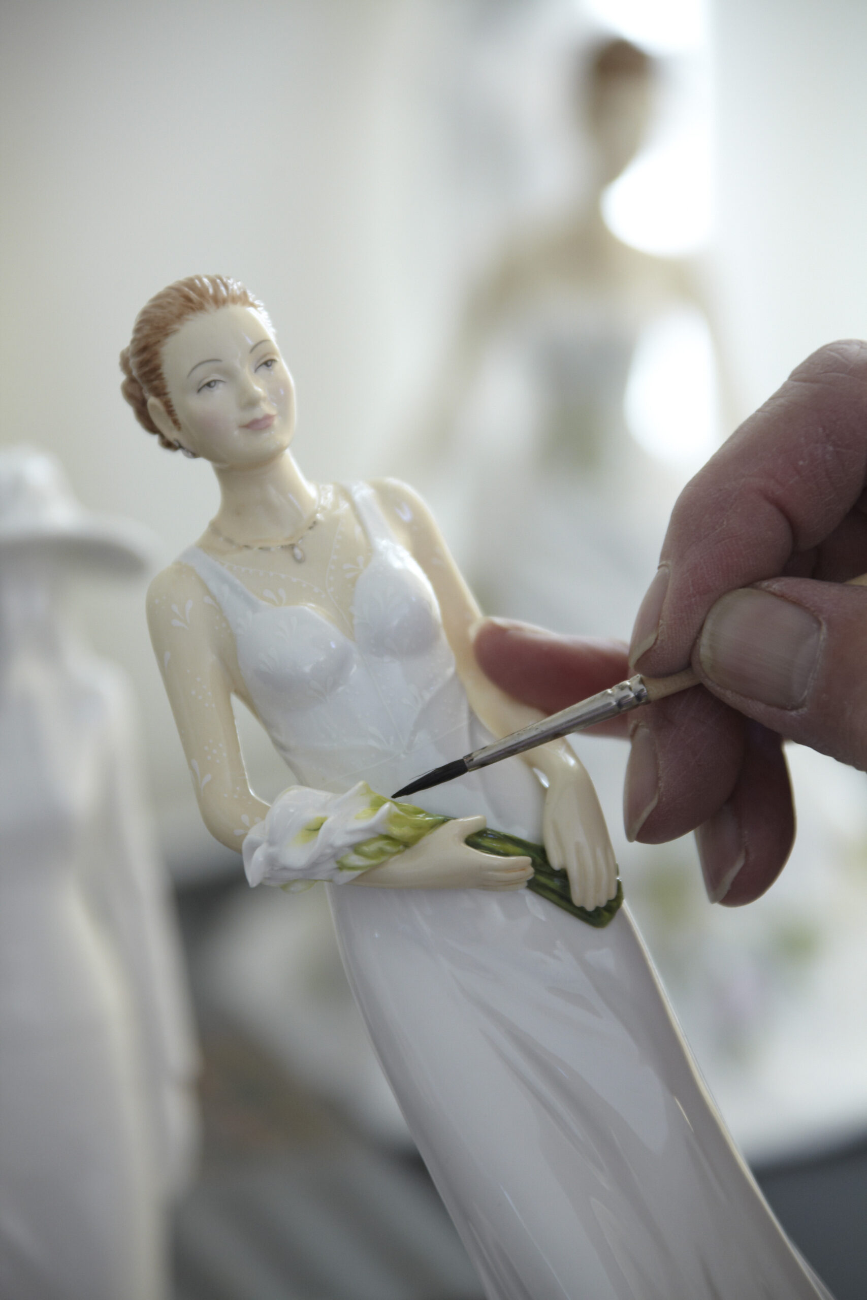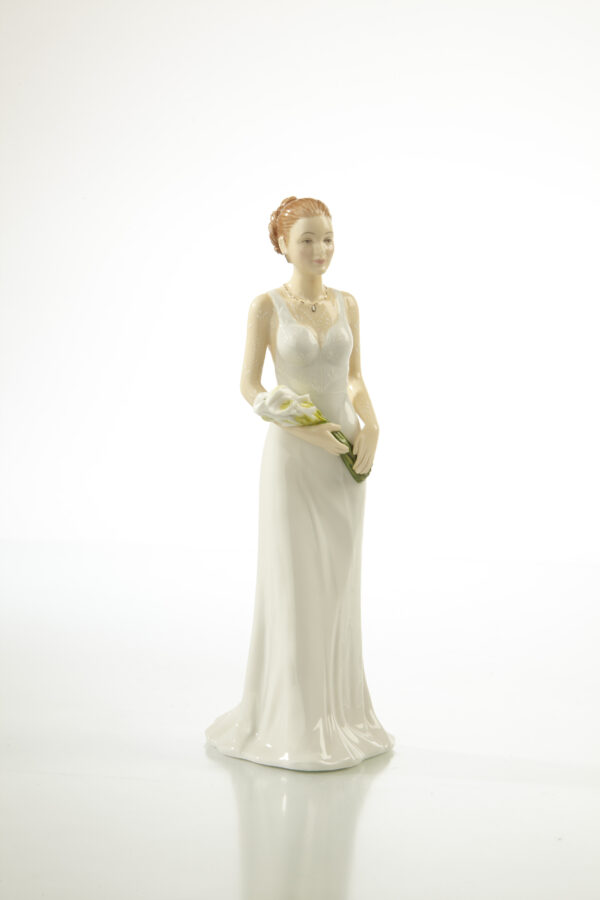 The English Ladies Your Special Day Wedding Bride Figurine features a stunning bride in her wedding gown, delicately poised and radiating happiness. Every detail, from the flowing lace of her dress to the soft curls of her hair, is hand-painted with precision and care. A delicate bouquet completes her look, symbolizing the beauty and joy of the special day.